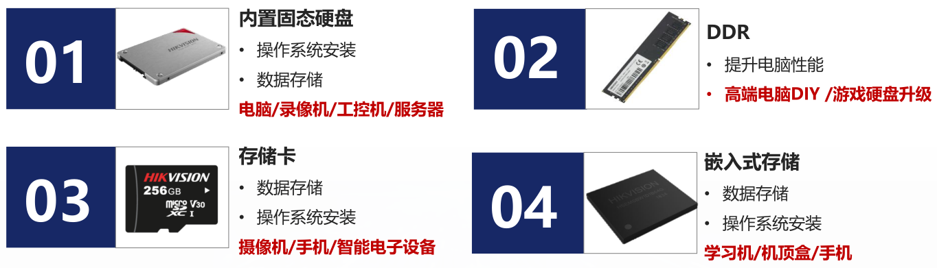 海康智慧存储提供包括固态硬盘SSD、存储卡、网盘、移动固态硬盘PSSD、固态U盘